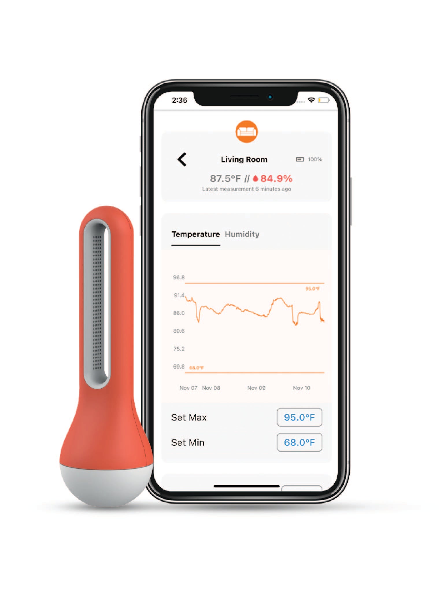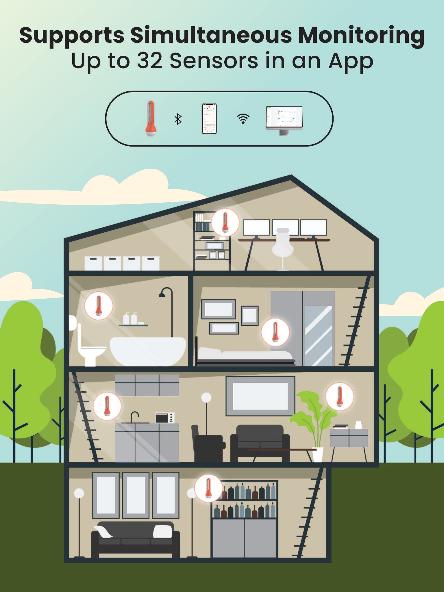 Sensor Data Access: Up to 100 days (4032 sets) sensing record are stored locally inside AirComfort. Can connect up to 32 AirComfort sensors in one App.