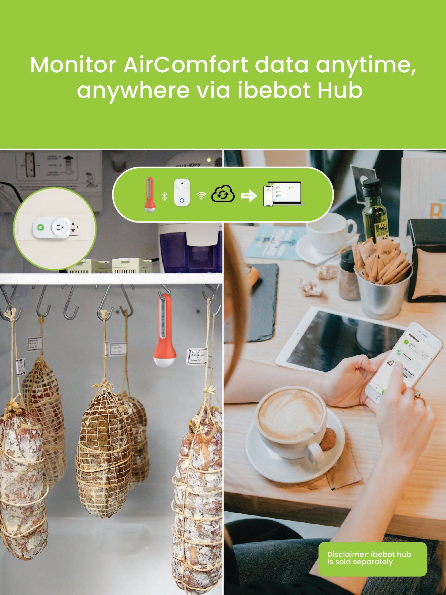 - Monitor remotely: Monitor data anytime, anywhere via ibebot Hub. A Wi-Fi bridge that connects AirComfort, allowing for constant synchronization and remote access to reading graphs through ibebot Apps and Dashboard+.
